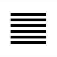 The first hexagram is made up of six unbroken lines. These unbroken lines stand for the primal power, which is light-giving, active, strong, and of the spirit. The hexagram is consistently strong in character, and since it is without weakness, its essence is power or energy. Its image is heaven. Its energy is represented as unrestricted by any fixed conditions in space and is therefore conceived of as motion. Time is regarded as the basis of this motion. Thus the hexagram includes also the power of time and the power of persisting in time, that is, duration.